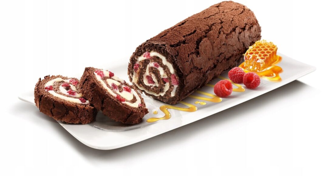 Marlenka Honey Roll with Cocoa and Raspberries to idealny wybór na rodzinne spotkania, elegancki deser do kawy i herbaty lub słodką przekąskę w ciągu dnia. Delikatna struktura ciasta sprawia, że każda porcja rozpływa się w ustach, oferując doskonałe połączenie miodowej słodyczy i owocowej świeżości. Dzięki tradycyjnej recepturze i naturalnym składnikom ciasto długo zachowuje swoją wilgotność i intensywny aromat.