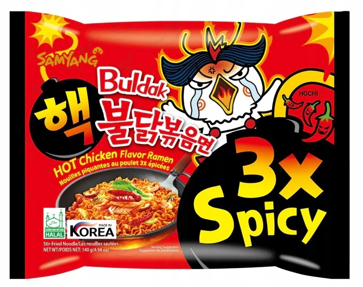 SamYang Buldak Hot Chicken 3x Spicy to propozycja dla odważnych, którzy szukają maksymalnie pikantnego smaku. Sprężysty makaron idealnie łączy się z gęstym, intensywnym sosem, który rozgrzewa każde podniebienie. SamYang Buldak Hot Chicken 3x Spicy to idealny wybór dla fanów ostrej kuchni azjatyckiej, którzy chcą podjąć prawdziwe wyzwanie smakowe.
