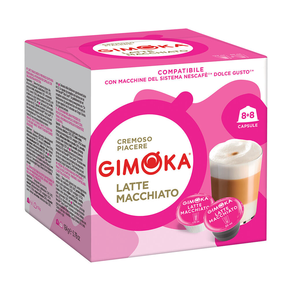 Gimoka Latte Macchiato to kapsułki kompatybilne z ekspresami Dolce Gusto, które umożliwiają przygotowanie napoju o bogatym aromacie i aksamitnej konsystencji. Każda porcja składa się z dwóch kapsułek: jednej z kawą, drugiej z mlekiem, co pozwala na uzyskanie idealnego balansu smakowego. Gimoka Latte Macchiato to propozycja dla tych, którzy pragną cieszyć się kawą o jakości kawiarnianej bez wychodzenia z domu.