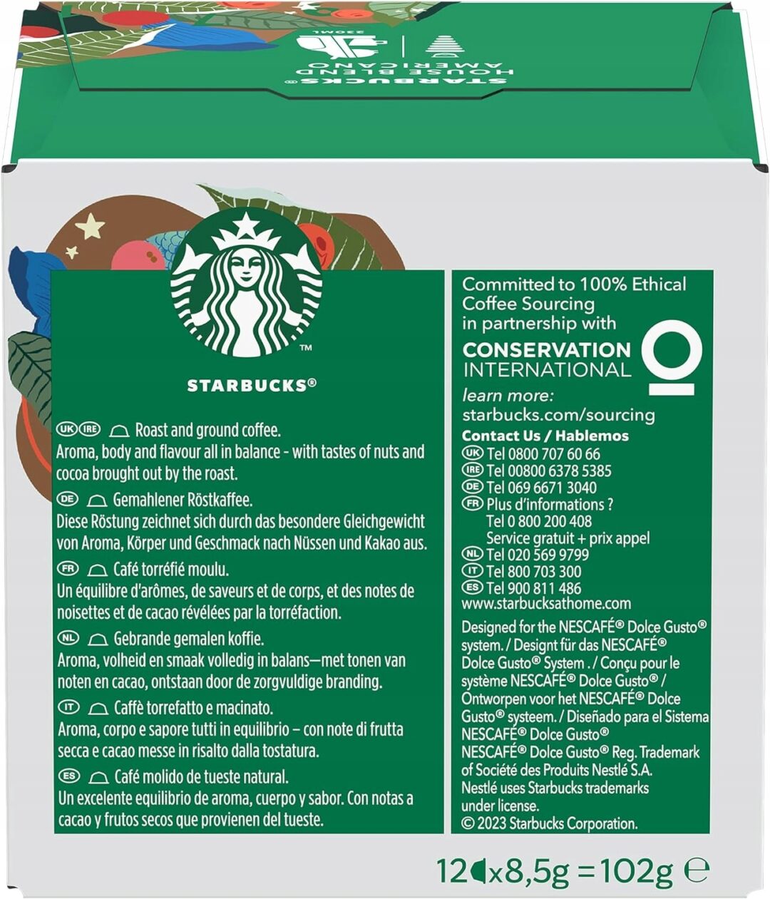 Dolce Gusto Starbucks House Blend Americano wyróżnia się delikatną kwasowością, aksamitną konsystencją i lekko słodkawym finiszem. Każdy łyk Dolce Gusto Starbucks House Blend Americano dostarcza głębi smaku i pobudzającej energii, bez nadmiernej goryczy. Dzięki kapsułkom Dolce Gusto przygotowanie idealnej filiżanki americano jest szybkie i wygodne – wystarczy chwila, by cieszyć się perfekcyjnie zaparzoną kawą.