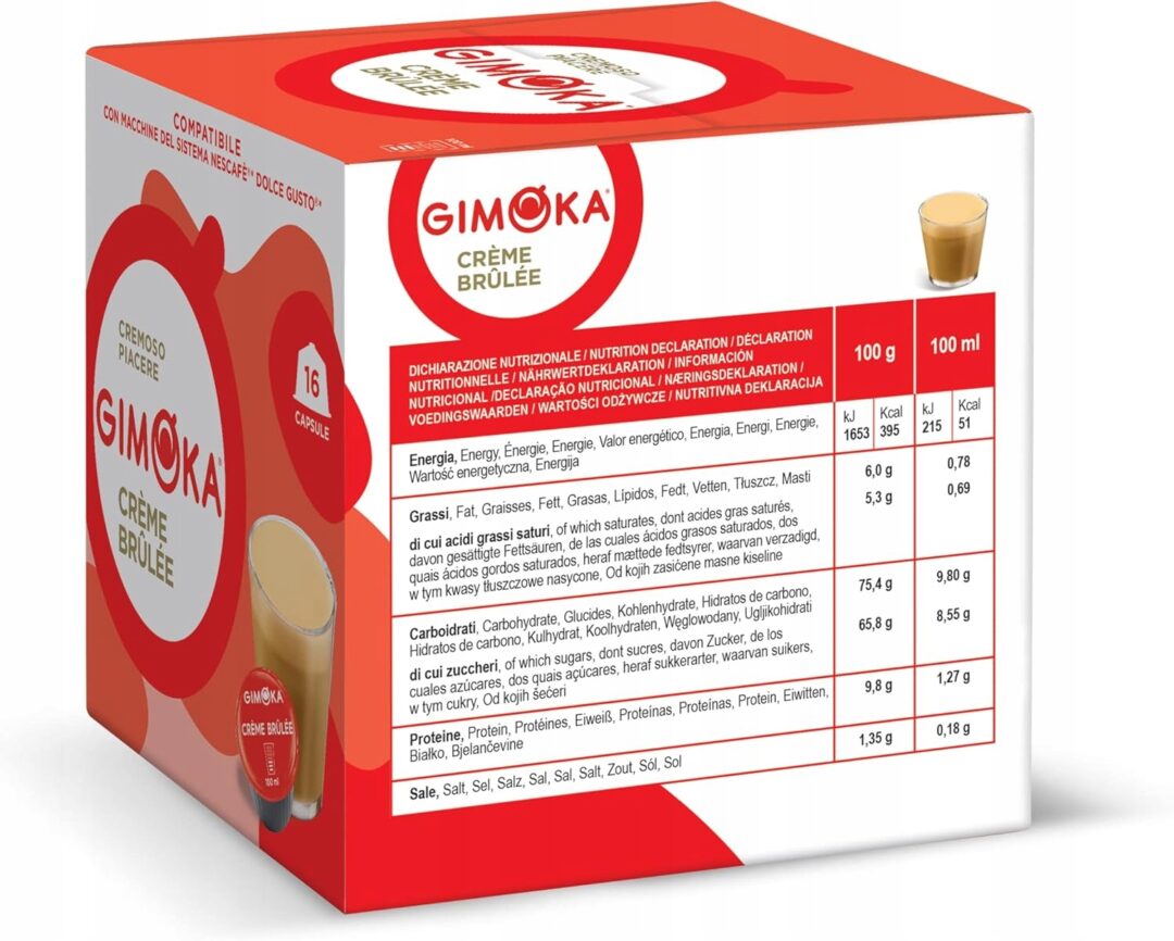 Gimoka Creme Brulee wyróżnia się przyjemną konsystencją i lekko mlecznym profilem, który nie dominuje, a podkreśla deserowy charakter napoju. Kapsułki sprawdzą się zarówno jako popołudniowy przerywnik, jak i łagodny początek dnia. Dzięki prostocie przygotowania w ekspresach Dolce Gusto, możesz cieszyć się smakiem w kilka chwil – bez wychodzenia z domu.