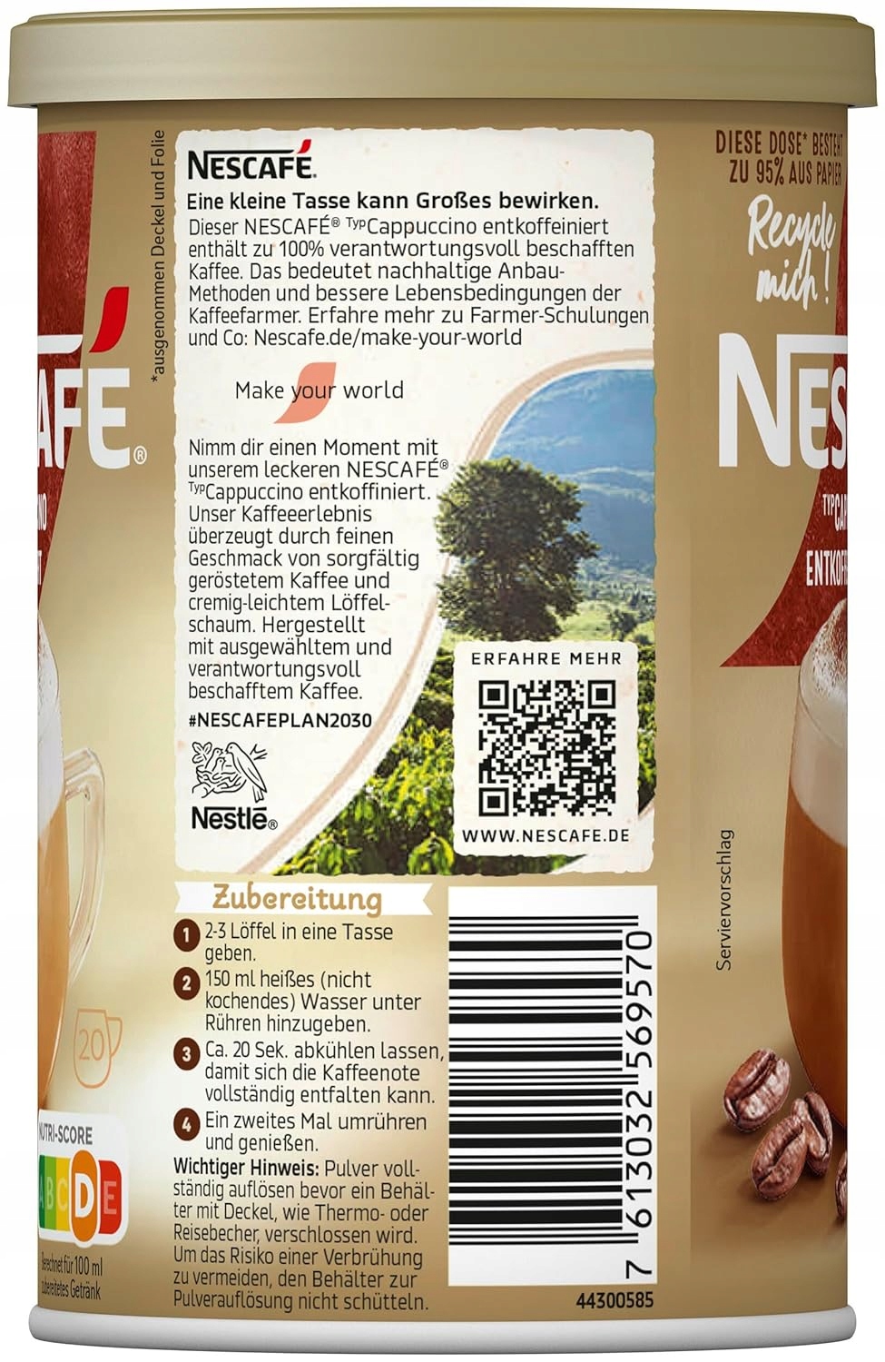 Spróbuj Nescafe Typ Cappuccino Bezkofeinowa i ciesz się kremowym smakiem cappuccino bez kofeiny. Dodaj do koszyka już teraz i delektuj się aksamitną kawą w każdej chwili!