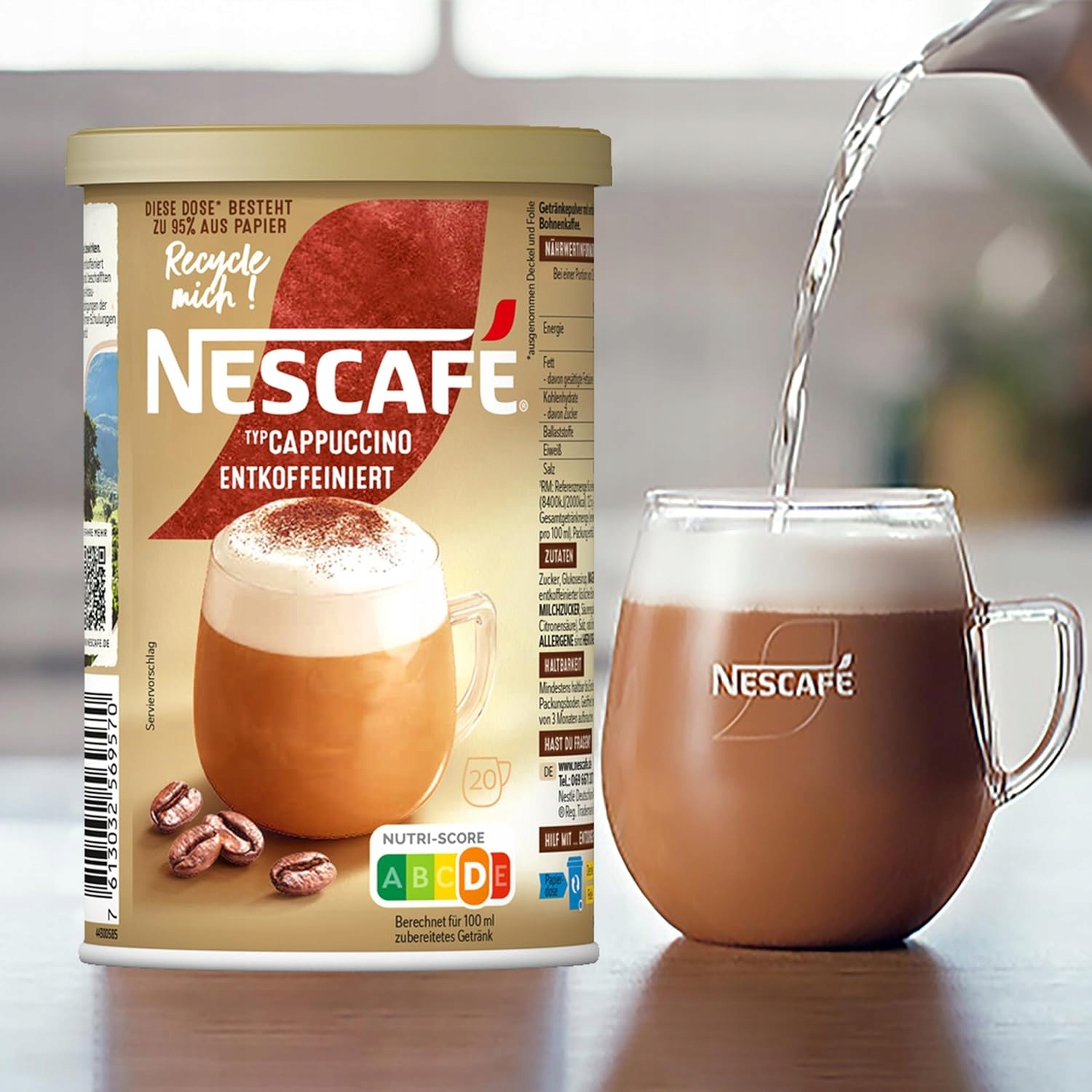 Nescafe Typ Cappuccino Bezkofeinowa to idealny wybór dla osób, które chcą delektować się ulubioną kawą o każdej porze dnia. Dzięki łatwej do dozowania formule wystarczy wsypać odpowiednią ilość kawy, dodać gorącą wodę i wymieszać, aby uzyskać perfekcyjnie przygotowane bezkofeinowe cappuccino o łagodnym, ale wyrazistym smaku. To świetna propozycja na relaksującą chwilę bez pobudzenia.