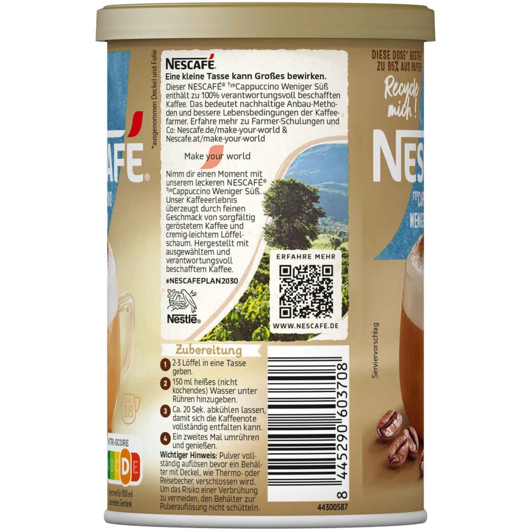 Spróbuj Nescafe Typ Cappuccino Mniej Cukru i ciesz się kremowym smakiem bez nadmiaru słodyczy. Dodaj do koszyka już teraz i delektuj się pyszną kawą o każdej porze dnia!