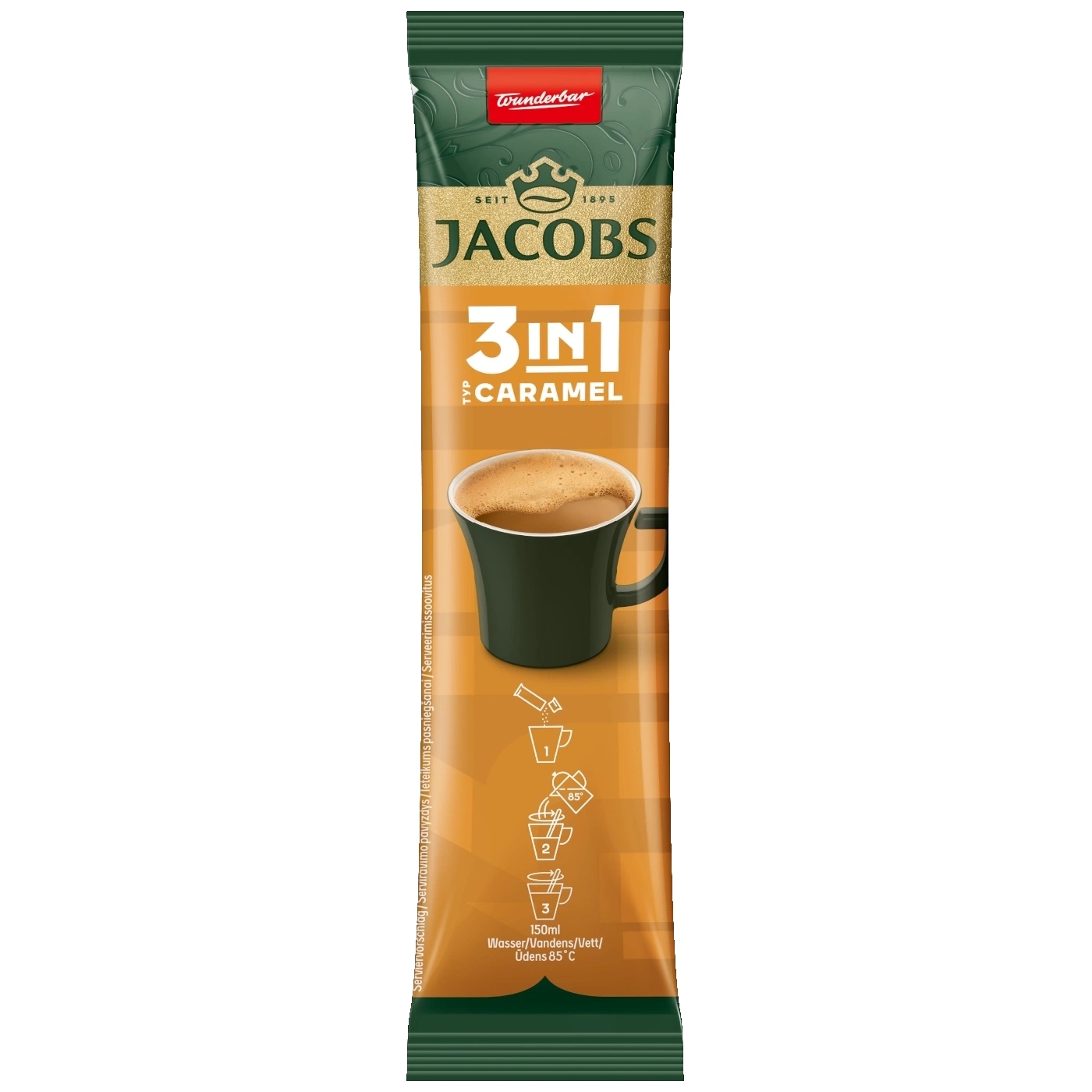 Jacobs Caramel 3w1 zachwyca harmonijnym połączeniem łagodnej kawy, aksamitnej konsystencji i wyraźnej karmelowej nuty. Smak pozostaje zbalansowany, przyjemnie słodki i bardzo przystępny, dlatego Jacobs Caramel 3w1 trafia do szerokiego grona miłośników kawowych napojów. Kremowa tekstura oraz intensywny aromat sprawiają, że każda filiżanka daje poczucie komfortu i codziennej przyjemności. Jacobs Caramel 3w1 doskonale sprawdza się jako szybka alternatywa dla klasycznej kawy.