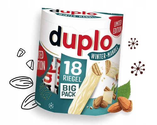 Spróbuj Ferrero Duplo Winter-Mandel i rozkoszuj się smakiem mlecznej czekolady i prażonych migdałów w wyjątkowym zimowym wydaniu. Dodaj do koszyka i ciesz się słodką przyjemnością każdego dnia!