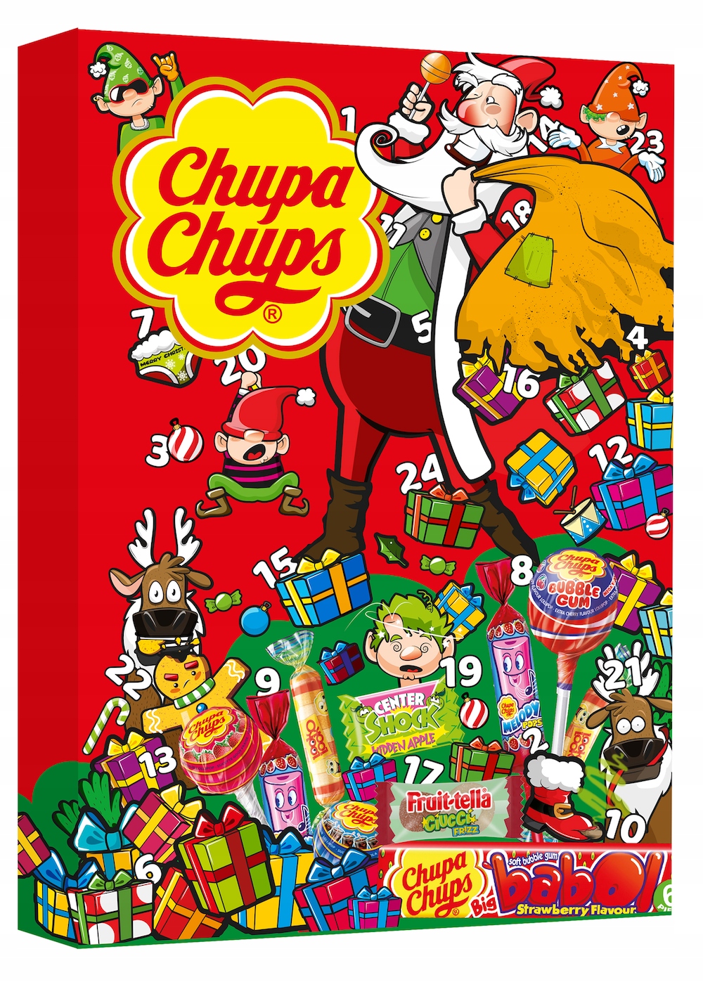 Kalendarz Adwentowy Chupa Chups – idealny sposób na odliczanie dni do świąt z pysznymi i różnorodnymi słodyczami. Wypełniony kultowymi produktami, takimi jak Fruittella, Center Shocks, Babol Strawberry, Look-o-Look Roll oraz klasyczne lizaki Chupa Chups, ten kalendarz adwentowy to idealna propozycja zarówno dla dzieci, jak i dorosłych. Kalendarz Adwentowy Chupa Chups to codzienna niespodzianka, która dodaje smaku i radości do przedświątecznego oczekiwania.