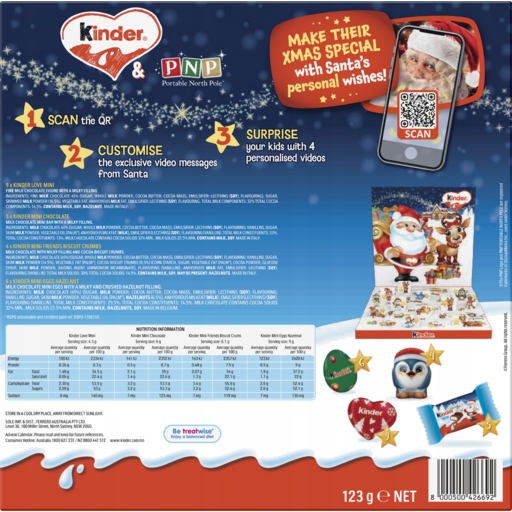 W Kalendarzu Adwentowym Kinder znajdziesz różnorodne czekoladowe figurki i przekąski, które charakteryzują się delikatnym mlecznym smakiem, z którego słynie Kinder. Każde otwarte okienko to nowe odkrycie i chwila radości dla dzieci i dorosłych. Kalendarz Adwentowy Kinder to również doskonały pomysł na prezent, który umili czas oczekiwania na święta.