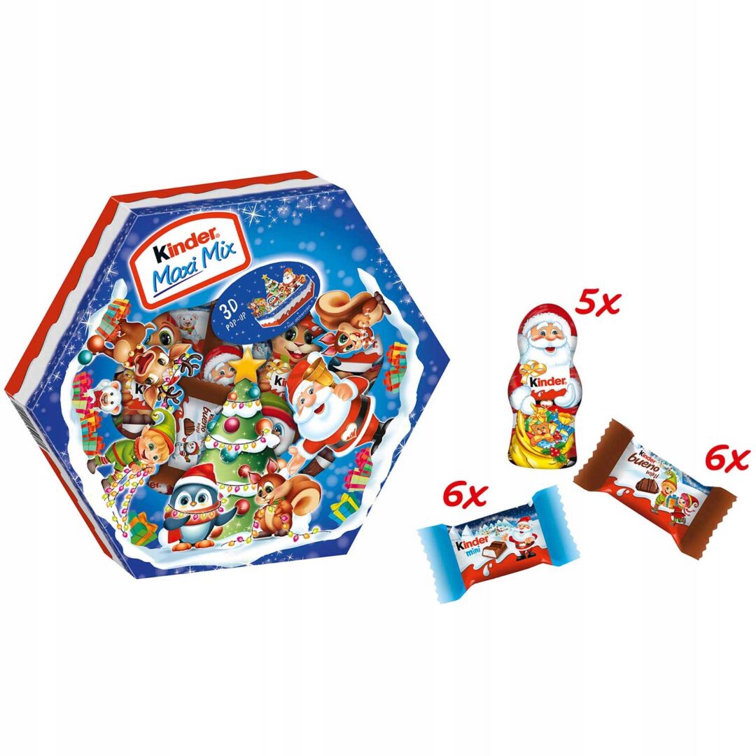 Marka Kinder od lat dostarcza najwyższej jakości produkty, które cieszą podniebienia i wprowadzają radość do codziennych chwil. Kinder Maxi Mix to świąteczny klasyk, który doskonale łączy tradycję z kreatywnym podejściem, oferując słodycze idealne na świąteczny czas.