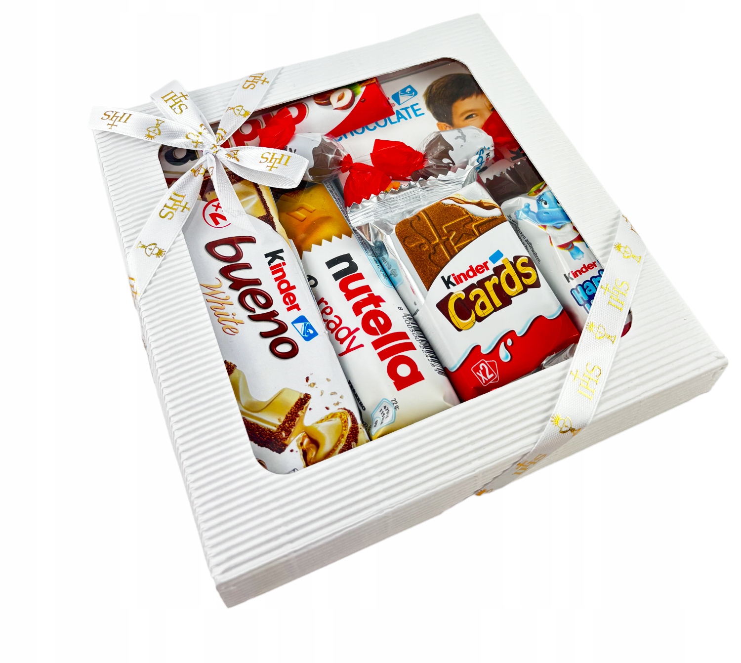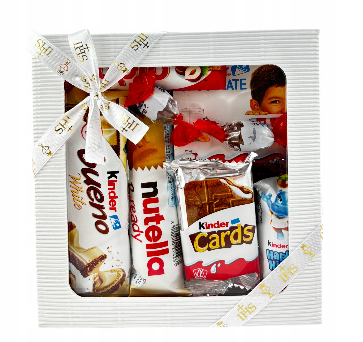Kinder, Kinder, Kinder – właśnie te słodycze od lat kojarzą się z radością i wyjątkowymi chwilami. Box komunijny Kinder to gotowy sposób na dodanie odrobiny słodkiej magii do tak ważnego dnia. Wybierz mądrze, wybierz zestaw Kinder na Komunię – bo liczy się smak, styl i uśmiech.