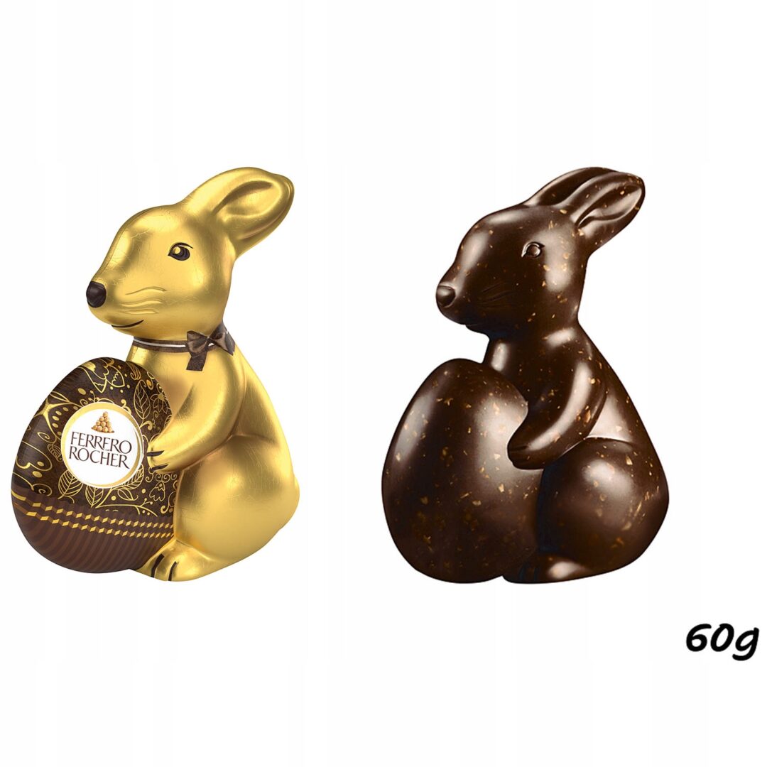 Marka Ferrero Rocher od lat zachwyca najwyższej jakości czekoladą i wyrafinowanymi recepturami. Ferrero Rocher Dark Figurka Zajączek wyróżnia się głębokim smakiem ciemnej czekolady, chrupiącą strukturą i eleganckim wyglądem, co czyni ją doskonałym prezentem na święta.