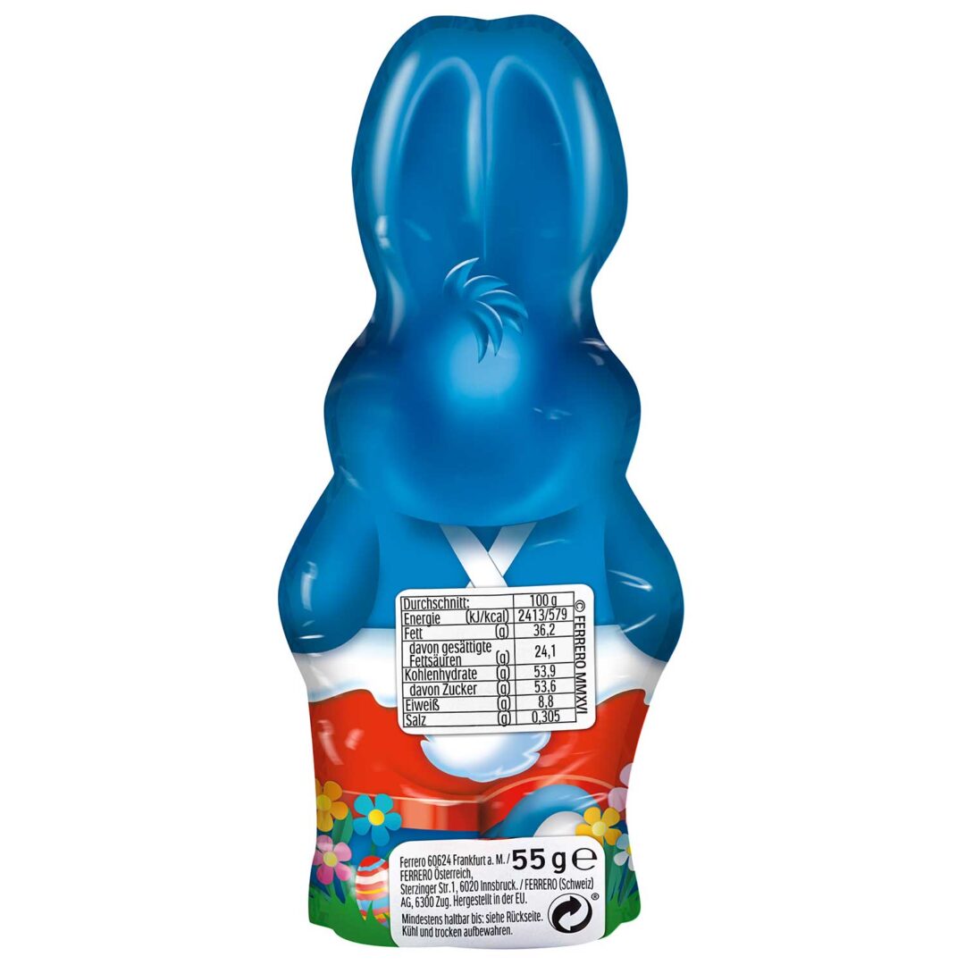 Kinder Zając Czekoladowy wyróżnia się wysoką jakością składników, charakterystyczną dla produktów Kinder. Figurka łączy w sobie aksamitną mleczną czekoladę z warstwą mlecznego nadzienia, co tworzy niepowtarzalne doznania smakowe. Każdy zajączek jest starannie zapakowany, co sprawia, że nadaje się również na drobny upominek dla bliskich podczas świąt.