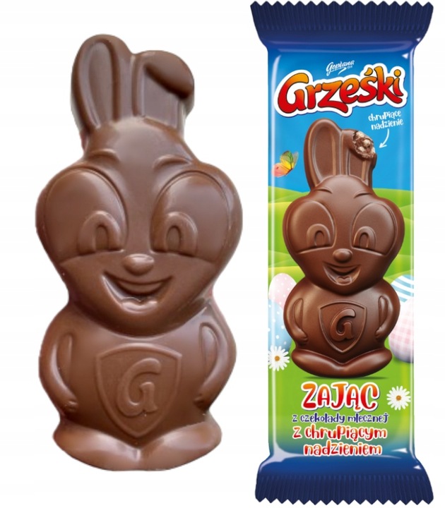 Grześki Zając Czekoladowy wyróżnia się łagodnym smakiem mlecznej czekolady oraz przyjemnie chrupiącym wnętrzem. Dzięki starannej formie i estetycznemu wykończeniu, produkt prezentuje się efektownie i cieszy nie tylko smakiem, ale i wyglądem. Grześki Zając Czekoladowy to słodycz, która przyciąga uwagę i wprowadza wiosenny nastrój do wielkanocnych przygotowań.