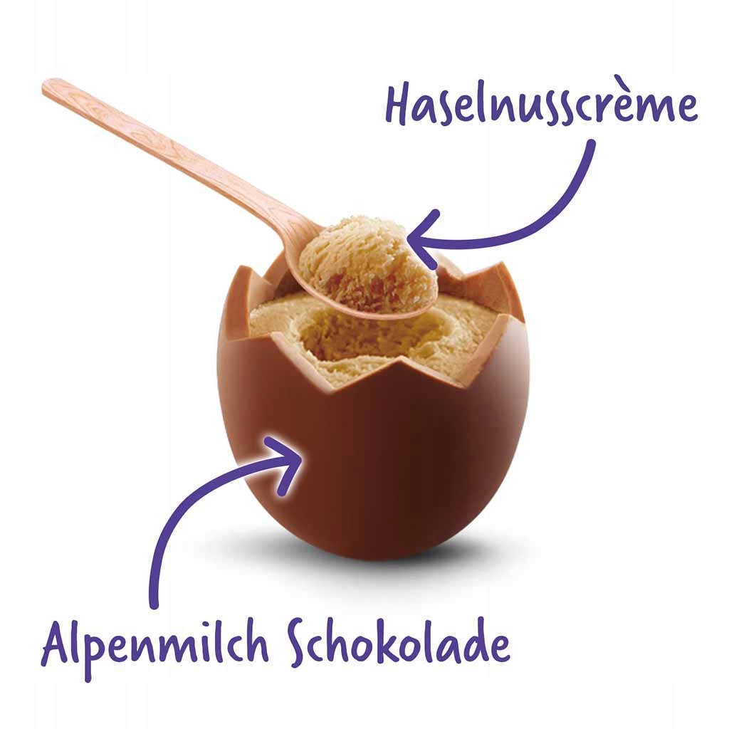 Milka Löffel Ei Haselnuss wyróżnia się nie tylko wyśmienitym smakiem, ale także atrakcyjnym opakowaniem w formie tradycyjnego kartonika na jajka. To sprawia, że produkt doskonale nadaje się na prezent lub jako element świątecznego koszyczka. Każde jajko skrywa w sobie harmonijne połączenie mlecznej czekolady i kremowego nadzienia orzechowego, które rozpływa się w ustach, dostarczając niezapomnianych doznań smakowych.