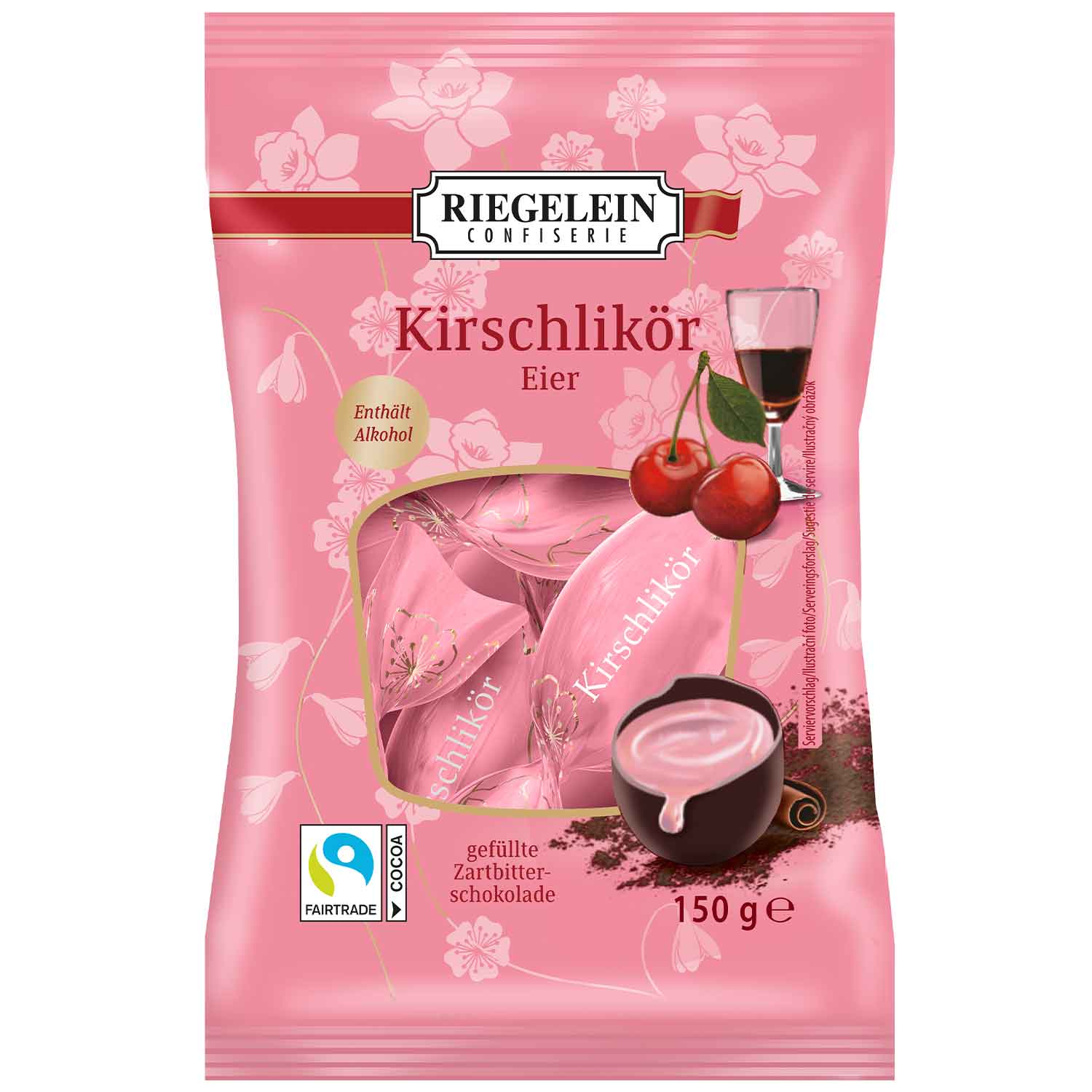 Riegelein Jajka z Ciemnej Czekolady z Likierem Wiśniowym 150g – eleganckie wielkanocne jajeczka wykonane z wyrafinowanej, ciemnej czekolady o głębokim, intensywnym smaku, wypełnione kremowym nadzieniem o wyrazistym aromacie likieru wiśniowego. W opakowaniu znajduje się około 7 sztuk jajeczek, co czyni je idealnym wyborem na Wielkanoc – jako dodatek do świątecznych koszyczków, luksusowy upominek dla dorosłych lub wykwintna przekąska na wielkanocnym stole.