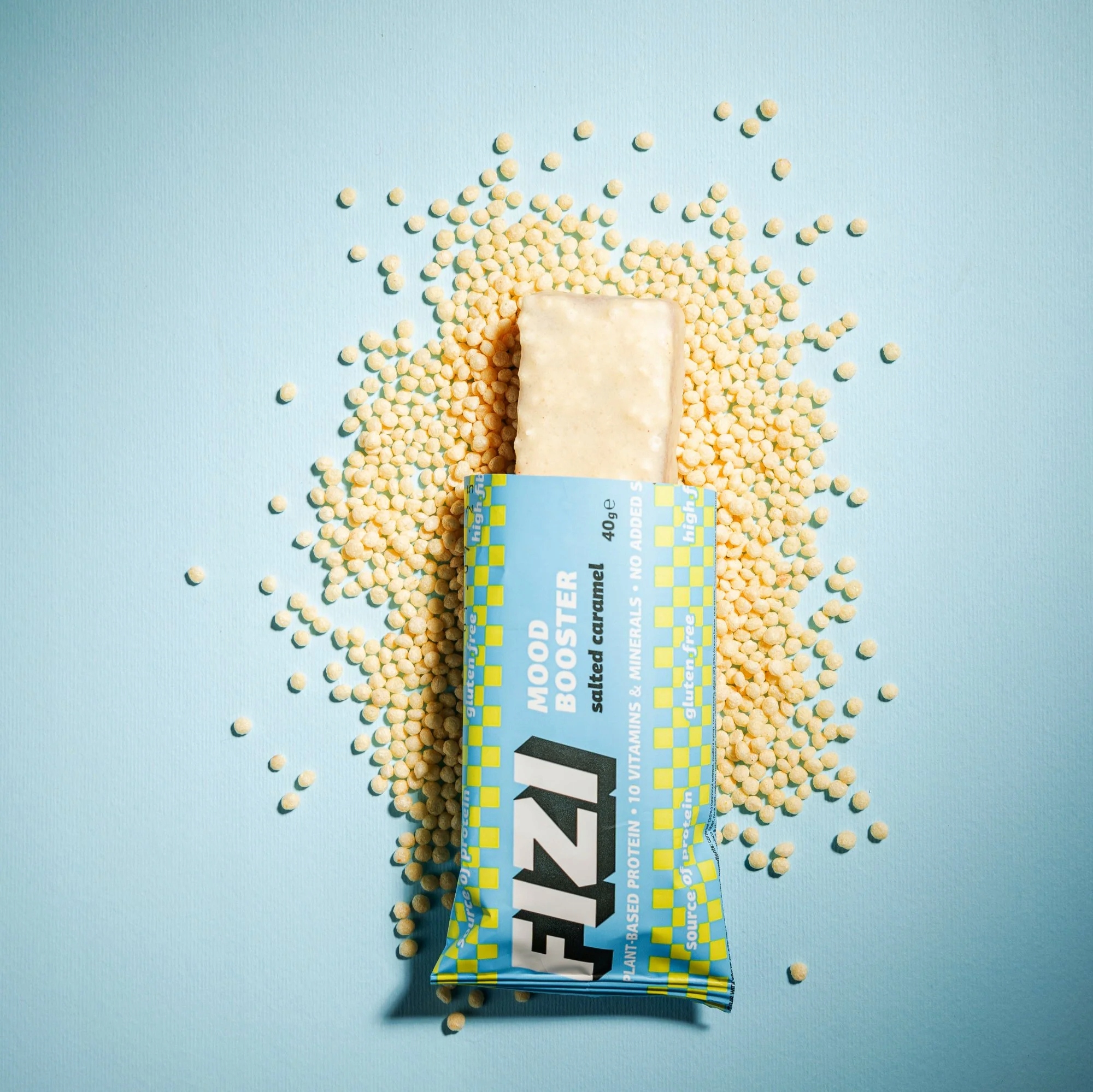 Fizi to marka stawiająca na czysty skład i roślinne białko. Fizi Mood Booster Salted Caramel powstał bez glutenu, laktozy i białego cukru, co czyni go odpowiednim dla osób aktywnych i świadomych diety. Ponadto producent zadbał o naturalne substancje słodzące i przyjemną strukturę, dzięki czemu baton wspiera doskonałe samopoczucie i smak. Fizi Mood Booster Salted Caramel łączy zdrowe podejście z prawdziwą przyjemnością.