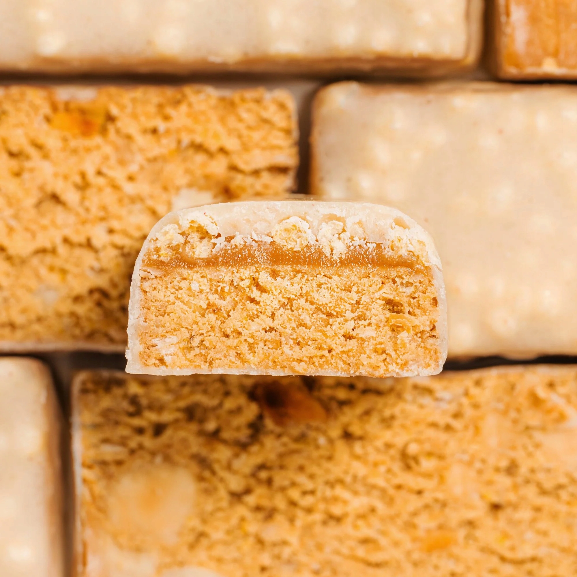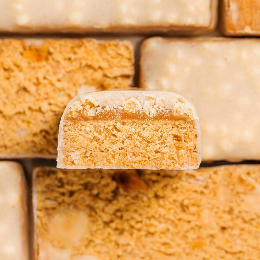 Fizi Mood Booster Salted Caramel wyróżnia się kremowo‑chrupką strukturą, w której wyczuwalna jest delikatna słodycz karmelu i wyraźny słony akcent. Ponadto konsystencja łączy miękkość z subtelną chrupkością, co czyni każdy kęs bardziej interesującym. Dzięki temu Fizi Mood Booster Salted Caramel dostarcza bogate doznania smakowe, ale nie przytłacza intensywnością. To połączenie tekstury i aromatu, które zaskakuje i bawi zmysły.