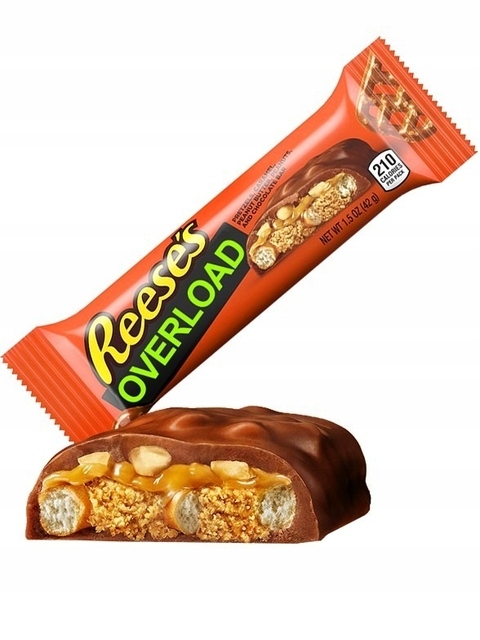 Spróbuj Reese’s Overload i ciesz się intensywnym połączeniem masła orzechowego, precli, karmelu i mlecznej czekolady. Dodaj do koszyka już teraz i rozkoszuj się bogatym smakiem w każdej chwili!