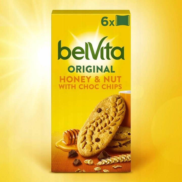 Belvita 5 Zbóż Honey & Nut to chrupiące herbatniki zbożowe, które łączą delikatną słodycz miodu z przyjemną nutą orzechów. Ta wyjątkowa kompozycja smaków sprawia, że Belvita 5 Zbóż Honey & Nut doskonale sprawdzają się jako smaczny początek dnia lub szybka przekąska w ciągu dnia. Belvita 5 Zbóż Honey & Nut świetnie komponują się z filiżanką kawy, herbaty lub szklanką mleka. Dzięki temu Belvita 5 Zbóż Honey & Nut pozwalają cieszyć się smakiem w każdej chwili.