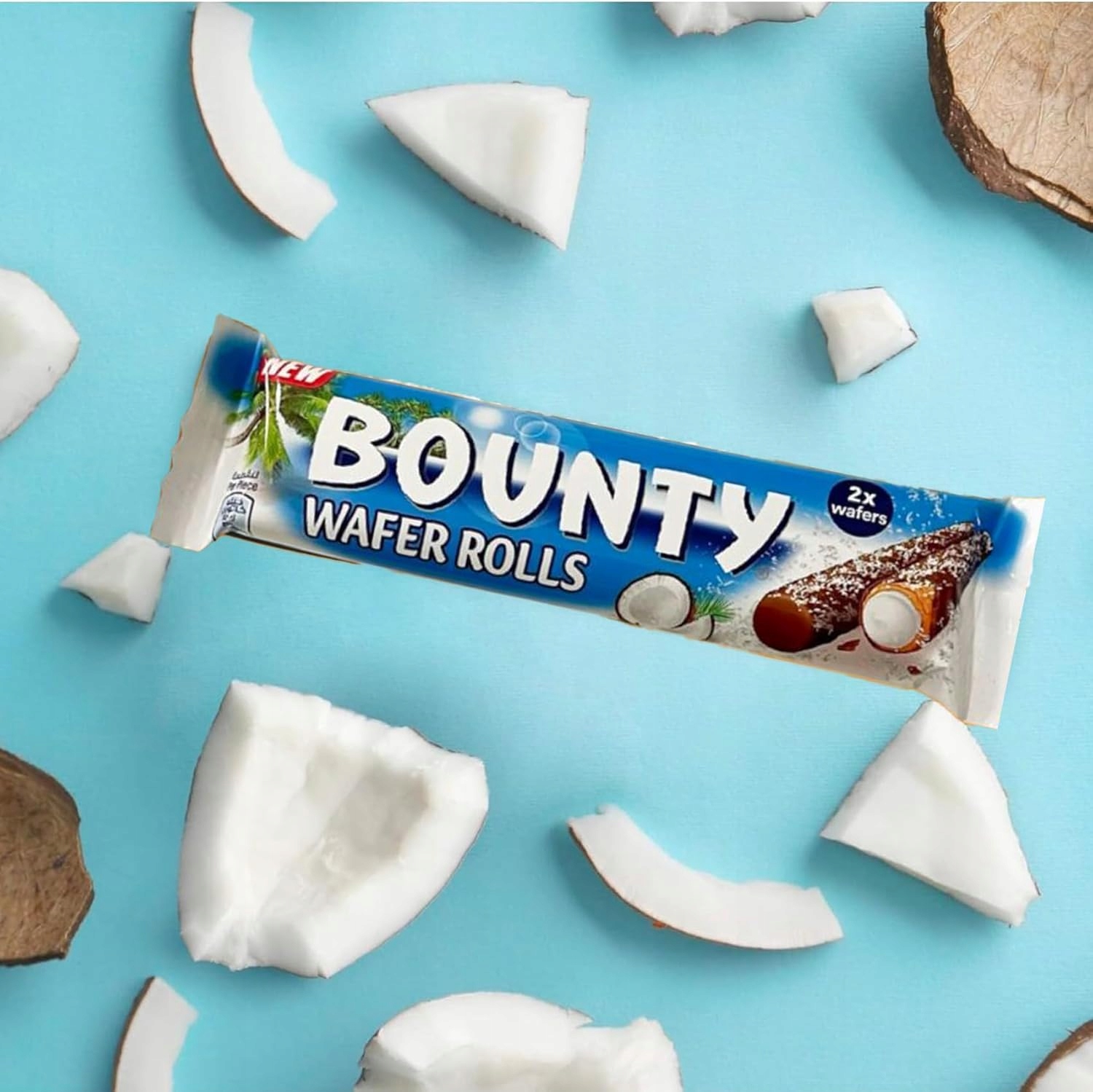 Bounty to marka znana z wyjątkowych słodyczy o charakterystycznym, kokosowym smaku. Bounty Wafer Rolls to nowoczesna odsłona klasycznego Bounty, która łączy egzotyczny smak kokosa z chrupkością wafla, zapewniając świeże podejście do ulubionej słodyczy.