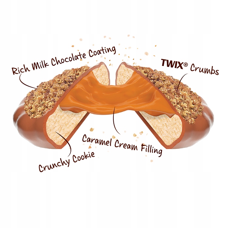 Smak Twix Filled Cake Bites to idealna harmonia miękkiego ciasta i charakterystycznego wnętrza inspirowanego batonem. Karmelowa słodycz przeplata się tu z czekoladową intensywnością, a całość dopełnia lekko chrupiący akcent. Dzięki temu każdy kęs gwarantuje satysfakcję i wyróżnia się spośród klasycznych słodyczy.