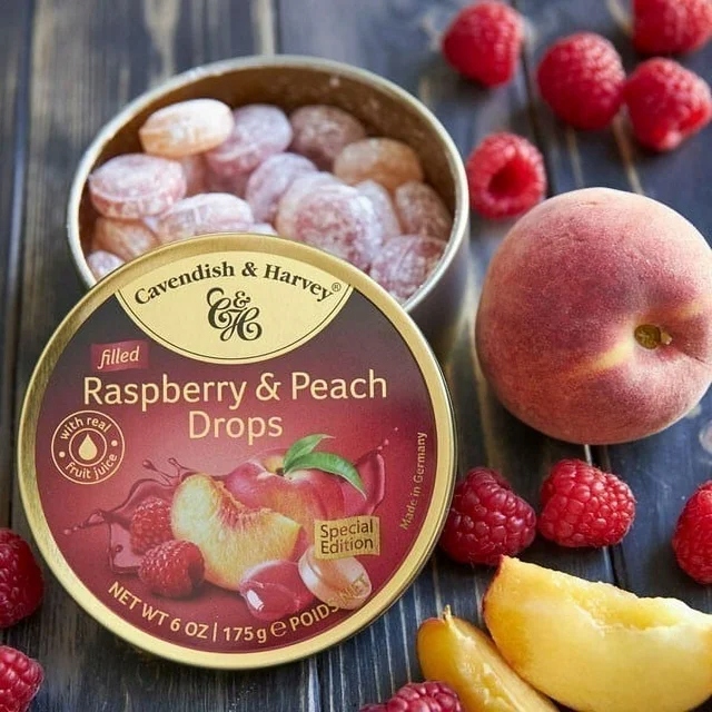 Marka Cavendish & Harvey słynie z produkcji najwyższej jakości słodyczy, a wersja Raspberry & Peach Drops to idealne połączenie owocowych nut, które zadowoli każde podniebienie.