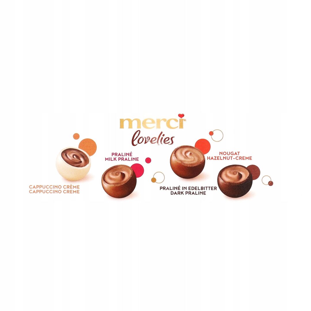 Merci to marka czekolad, która oferuje wykwintne pralinki i czekoladki idealne na każdą okazję. Znana z doskonałej jakości i eleganckich opakowań, Merci pozwala wyrazić wdzięczność i sprawić radość bliskim.