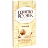 Ferrero Rocher White Hazelnuss 90g to pyszna tabliczka białej czekolady z dodatkiem całych orzechów laskowych, otoczona chrupiącą warstwą wafelka i aksamitnym nadzieniem.