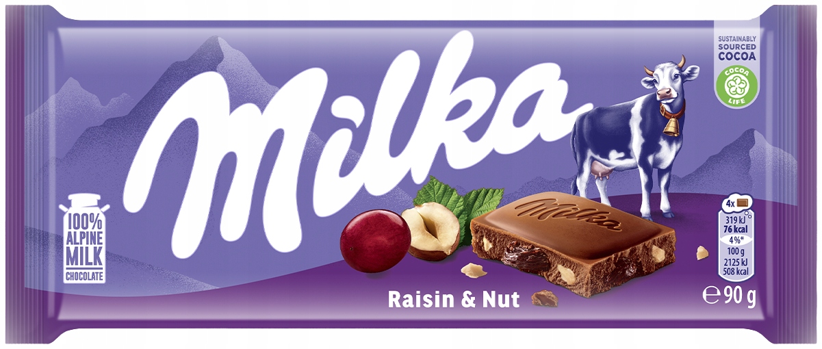 Milka to marka rozpoznawalna na całym świecie dzięki swojej wyjątkowo delikatnej, alpejskiej czekoladzie o kremowej strukturze. Od lat buduje zaufanie klientów, oferując słodycze o dopracowanym smaku i wysokiej jakości. Milka Raisins & Nut doskonale wpisuje się w tę tradycję, łącząc klasyczny smak mlecznej czekolady z dodatkami, które podkreślają jej wyjątkowy charakter.