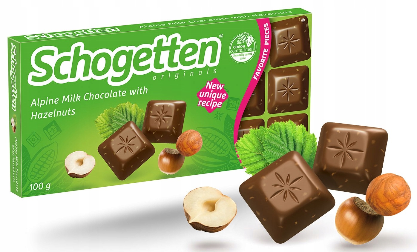 Schogetten to niemiecka marka czekolady słynąca z wygodnych, podzielonych na małe kostki tabliczek. Oferuje szeroką gamę smaków, łącząc tradycję z nowoczesnością, aby dostarczyć wyjątkowych doznań smakowych każdemu miłośnikowi słodyczy.