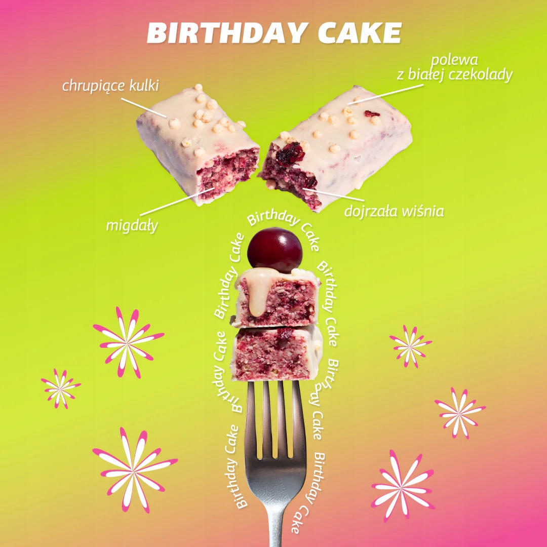 Fizi to marka znana z nietuzinkowych kompozycji smakowych i kreatywnego podejścia do słodyczy. Fizi Birthday Cake Cookie Dough + Cherry potwierdza, że marka potrafi zaskakiwać oryginalnością — połączenie ciasta i owocu w jednym produkcie to efekt odwagi w smakowych eksperymentach. Dzięki temu Fizi Birthday Cake Cookie Dough + Cherry wyróżnia się na tle innych słodyczy dostępnych na rynku.