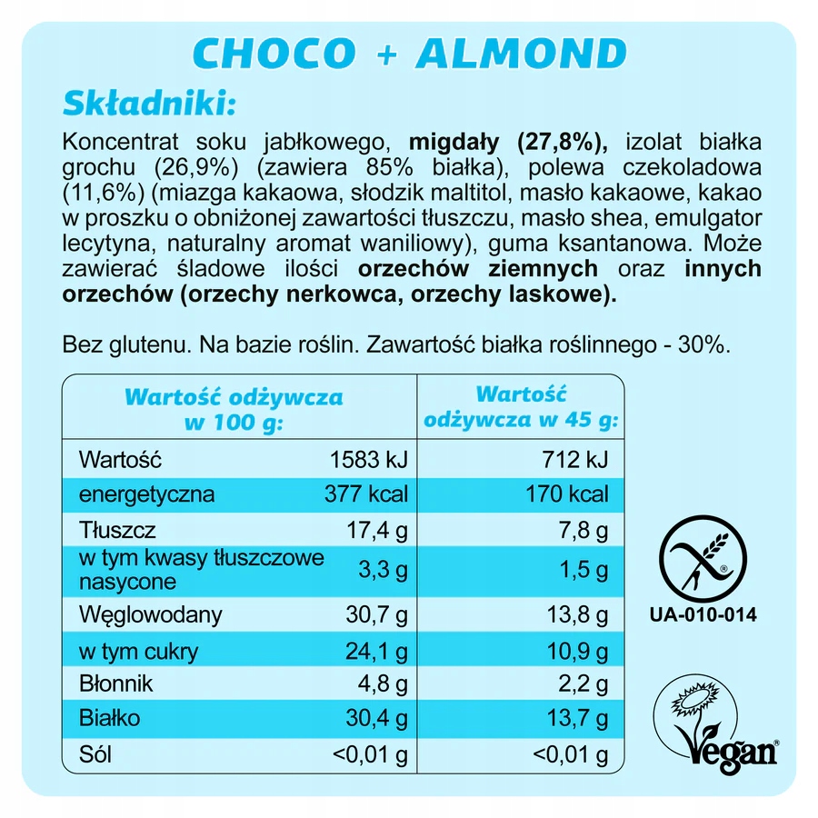 Fizi Protein Choco + Almond oferuje harmonijne połączenie intensywnej czekolady z chrupiącym migdałem, co tworzy smak pełen głębi i naturalnej słodyczy. Batony mają zwartą, ale miękką konsystencję, która syci i dostarcza przyjemności z jedzenia. Dzięki swojej strukturze świetnie sprawdzają się w podróży lub jako element codziennej diety. Fizi Protein Choco + Almond nie tylko smakuje, ale też daje realne wsparcie w ciągu dnia.